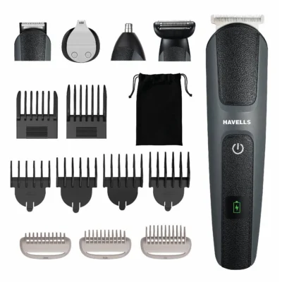 The Havells GS8714 14in1 Grooming Kit; also known as the Best Beard Trimmer Grooming Kit 8094; is a waterproof kitchen appliance designed for comprehensive grooming. Enjoy a 120-minute runtime for all your trimming and detailing needs with this versatile beard trimmer.